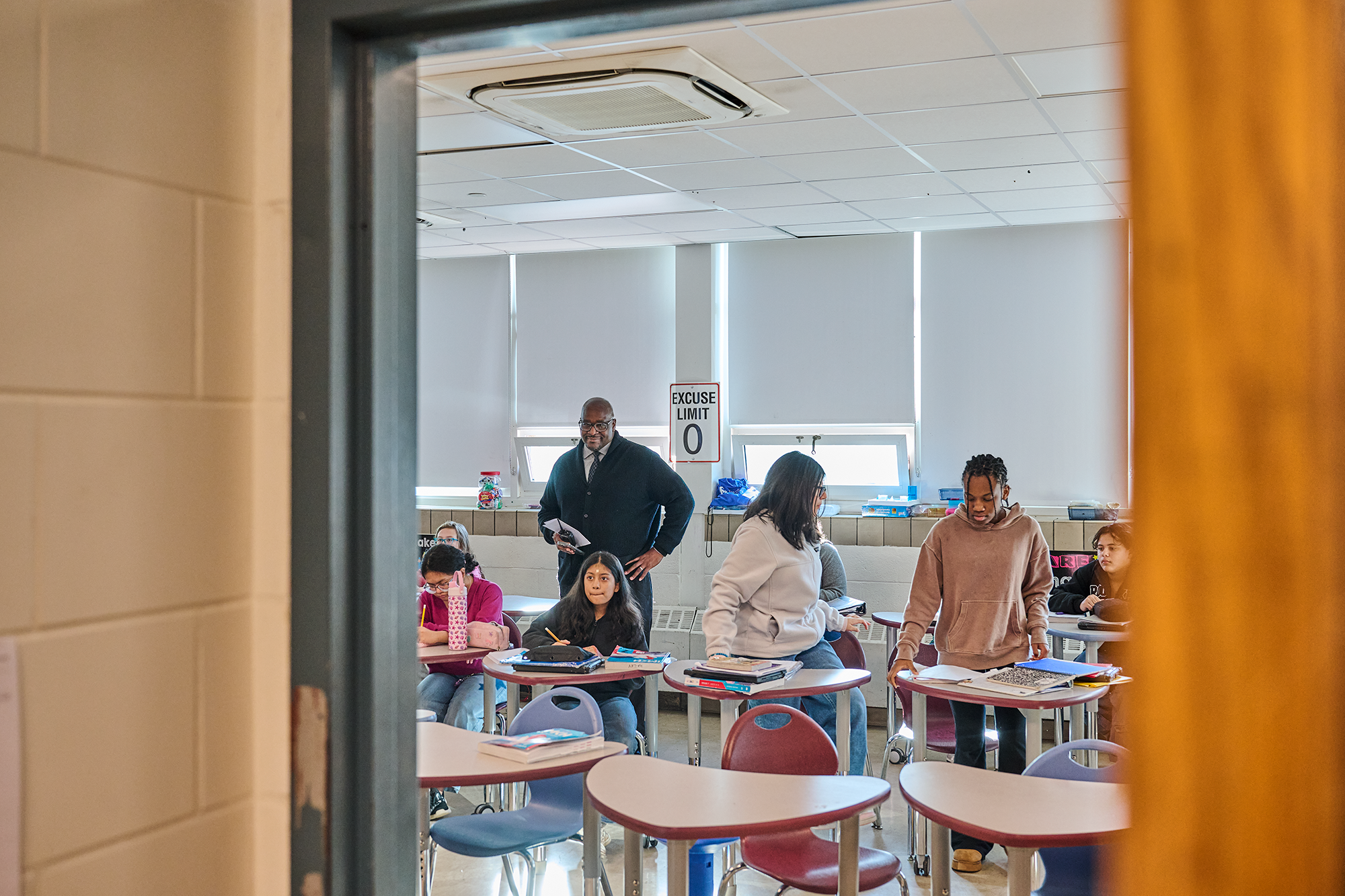 Shortly after 8 a.m., Lewis is finally in the building. Instead of beelining to the office for a full day of meetings and paperwork, he heads for the halls. Lewis has asked the school secretaries to knock on his door whenever he spends more than 20 minutes in his office — or what he jokingly calls his storage closet.